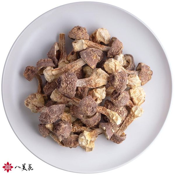 姬松茸,原產於巴西,又稱「巴西蘑菇」,後來經人工栽培成功,成為大眾化食用菌。鮮品菇蓋深褐色,菇柄奶白色;乾品呈橙黃/ 橙啡色,肉質緊密有彈性,香氣十足。