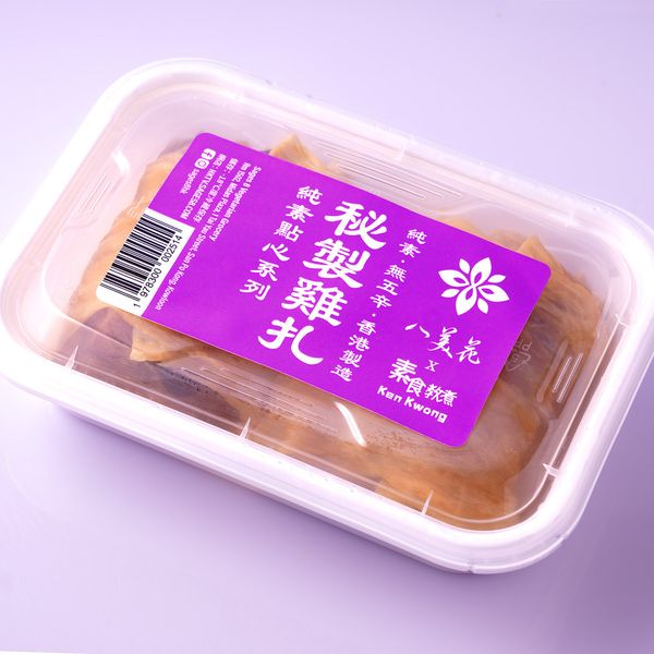 重現經典港式點心的精髓!我們的 純素秘製雞扎 以創新手法詮釋傳統美味,選用優質素雞+素豬製成仿真雞肉,搭配新鮮腐皮、香菇及芋頭,層層包裹出豐富口感。