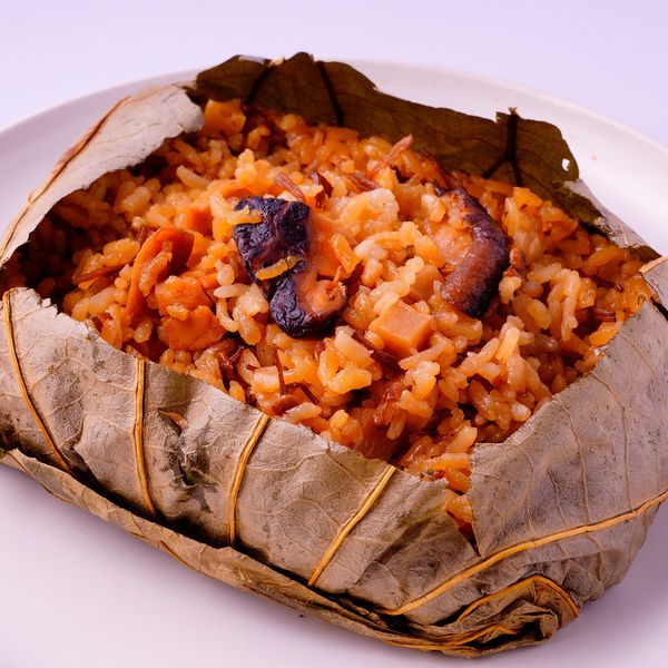 八美花 x 素食教煮 - 純素鮑魚雙菇荷葉飯