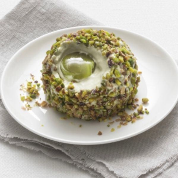 香甜的開心果意式雪糕 (gelato),中心配以半溶的開心果醬,表面再灑上焦糖榛子脆脆及開心果仁碎,每口都是滿滿的開心果!