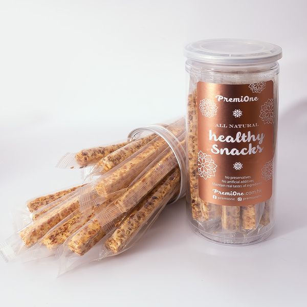 由台灣特產的五穀為原料製成,使用台灣自然膨發黃金蕎麥,加拿大亞麻籽、白芝麻、杏仁等天然原料,搭配小麥粉、奶油、冰糖、深層海鹽及素食芝士粉製成,不但口感酥脆,加上芝士的奶香,有如千層酥的味道。此外,焗製過程無加防腐劑及豬油,適合奶素友人食用,並且每支五榖棒都獨立包裝,方便攜帶,是一款不容錯過的零食選擇。