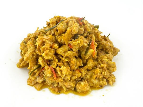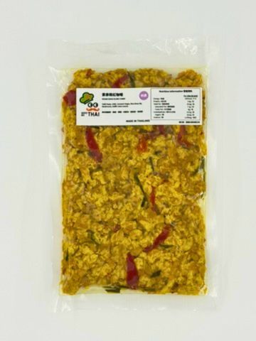 成份: 植物肉碎、泰式辣椒膏、辣椒、椰糖、米糠油、鮑魚菇、青檸葉、水