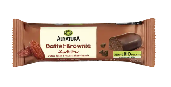 給布朗尼 (brownie) 愛好者和所有朱古力控:Alnatura 椰棗布朗尼黑朱古力水果棒,濃鬱的朱古力風味和濕潤的口感,隨時邀請您享受片刻的甜蜜。椰棗、可可和波本香草完美融合,打造出這款香氣四溢、外裹優質黑朱古力的美味零食。這款純素零食的所有原料均來自有機種植。