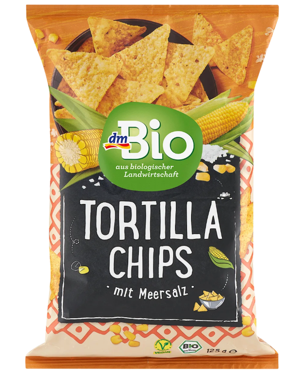 dmBio玉米片產自西班牙,採用傳統的墨西哥配方製作而成。製作過程只需三種原料,但需要耐心。玉米粒需浸泡並烹調數小時,然後揉成麵團,並在烹調過程中去除外皮。最終成品是酥脆可口、玉米風味濃鬱的玉米片,並佐以少許細海鹽,口感更加完美。