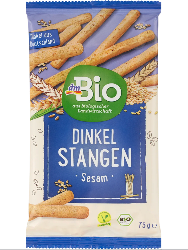 酥脆的 dmBio 斯佩耳特小麥條採用德國純斯佩耳特小麥 (spelt) 製成。它們是根據德國家族企業的傳統配方生產的。這些斯佩耳特小麥條上撒有上等芝麻,是居家和外出時的理想零食,是全家人的有趣零食。