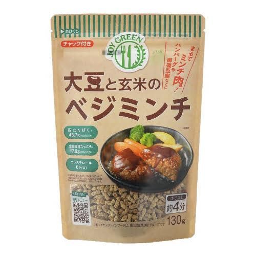這種植物肉使用糙米和脫脂大豆製成,透過我們的專有技術抑制大豆特有的氣味,同時呈現肉的真實質感。由於它是小粒狀的,所以可用它來代替漢堡和咖哩等菜餚中的肉類。一包大約為4人份。