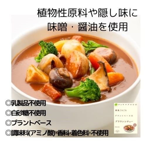 成份:蔬菜(國產胡蘿蔔、土豆、紅辣椒)、炒蔬菜(洋蔥、胡蘿蔔、芹菜)、蘑菇、番茄醬、小麥粉、紅酒、米漿、醬油、菜籽油、甜菜糖、味噌醬、蒜蓉、清酒、番茄汁(濃縮番茄汁)、棗醬、椰奶、蔬菜高湯塊、洋蔥粉、米醋、薑蓉、鹽、海帶粉、乾香菇、香料(含小麥和大豆)