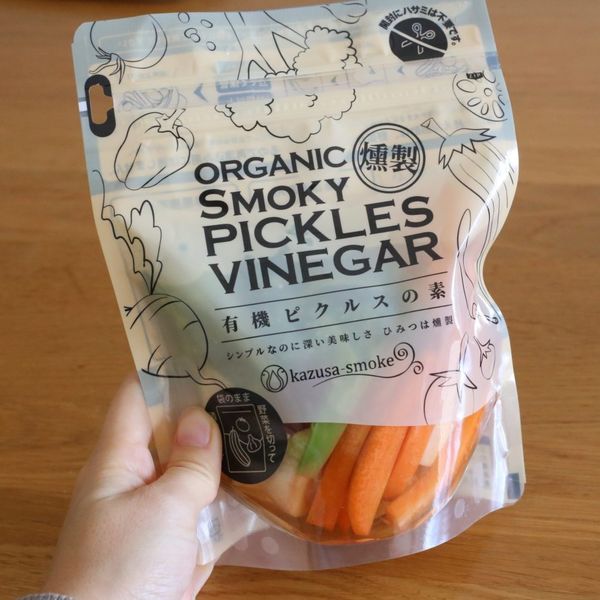 這款有機煙熏泡菜調味醋包,是針對有機蔬菜的全新調味方案,僅使用嚴選的有機純米醋、有機砂糖以及巴塔哥尼亞鹽湖的湖鹽,不使用化學調味料或香精進行煙熏,創造出全新的 “煙熏泡菜” 風味。醃製後蔬菜的顏色更加醒目,醃製後看起來非常漂亮時尚。請將它用於彰顯您生活方式的場合,例如拜訪朋友時作為小禮物或開派對時作為前菜。