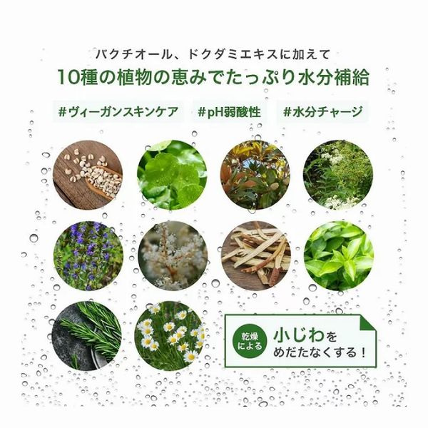成份:水、甘油、二丙二醇 (DPG)、乙醇、丁二醇(BG)、抗壞血酸棕櫚酸酯磷酸三鈉、魚腥草萃取、薏苡仁萃取物、積雪草萃取物、補骨脂酚、向日葵葉萃取、白柳樹皮萃取、黃芩根萃取物、虎杖根萃取物、甘草根萃取物、茶葉萃取物、迷迭香葉萃取物、洋甘菊花萃取物、卵磷脂、苯乙烯/乙烯基吡咯烷酮共聚物、黃原膠、檸檬酸鈉、檸檬酸、對羥基苯甲酸甲酯、苯氧乙醇