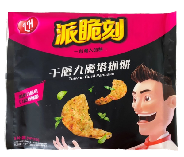 千層九層塔抓餅Taiwan Basil Pancake 是台式料理必備,台灣人都愛的九層塔。老師傅獨門配方的香、酥、脆餅皮,加入當日新鮮配送的「特選紅骨九層塔」,濃厚的九層塔香氣,口口留香,垂涎欲滴,怎麼吃都不膩。