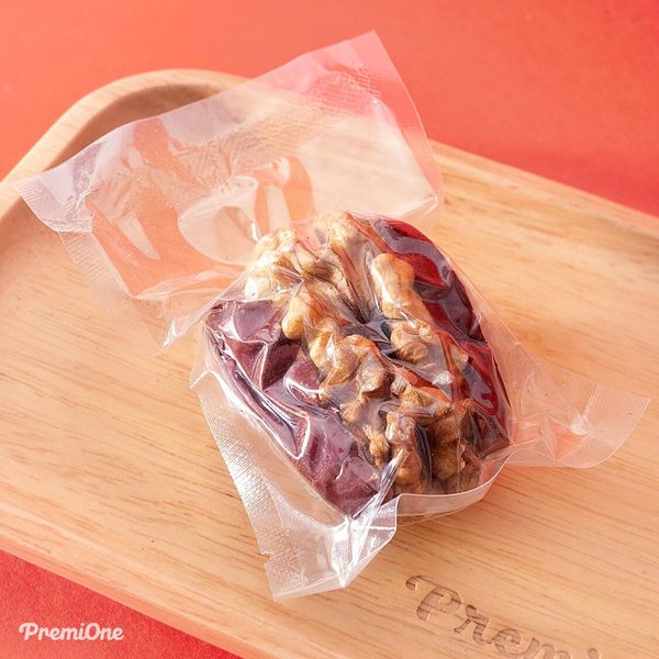 而我們這個合桃紅棗夾心是零食中的XO,口感清甜香脆,以當季新疆特級新紅棗及新合桃新鮮製作,而且每個成品都在25克以上,除了美味之外還有益健康!為保新鮮,每個合桃紅棗夾心都會有獨立真空包裝,真是沒的挑剔!