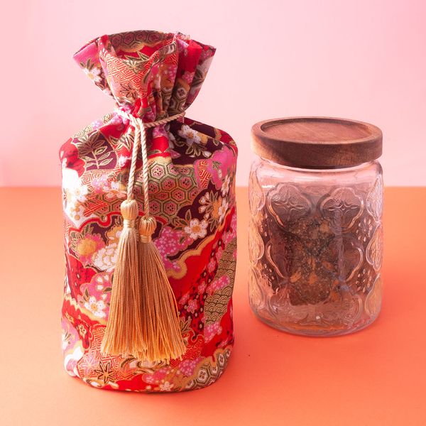 為貫切環保原則,今年我們特別訂製了一個非常精緻的玻璃密氣樽及日式索口袋作為這份小禮物的包裝,這個玻璃密氣樽除了可以放零食外,還可以放其他花果茶葉或食材,而日式索口袋則可用來放小物或利是,無論送禮或自用都既美觀又實用!新年放在全盒旁亦非常漂亮呢!