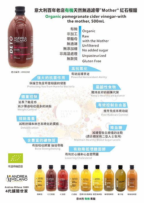 Andrea Milano 1889 - 有機天然無過濾帶醋母紅石榴醋