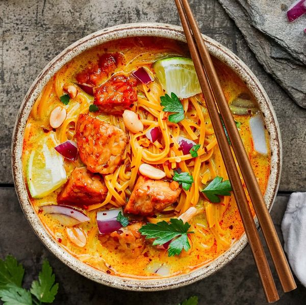 Khao Soi 是一種辛辣的泰式椰子咖哩湯,這個是植物純素配方,不含肉類及動物成分。湯底主要依賴咖哩粉(含薑黃、孜然等)和多種香料調製由於有椰子粉包,它非常柔滑,芳香,只要幾分鐘就可以品嘗到地道正宗的泰北味道!