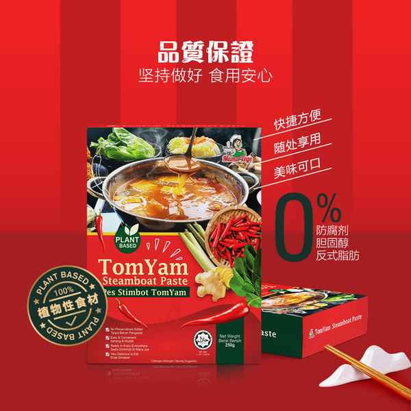 只要MAMAVEGE冬陰功火鍋醬,就能煮出一鍋熱氣騰騰、包含酸、辣、鹹、香美味可口的火鍋! 只要倒入火鍋醬料,加入1000毫升水,攪拌均勻,煮10分鐘即可。加入你喜歡的食材,再也不用出門買火鍋醬料了。現在,你可以在家中輕鬆方便地與親朋好友歡聚一堂,共享美味的素食火鍋。
