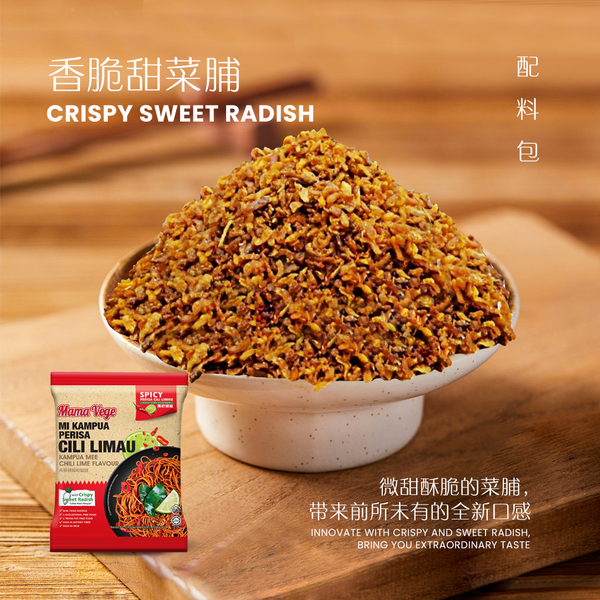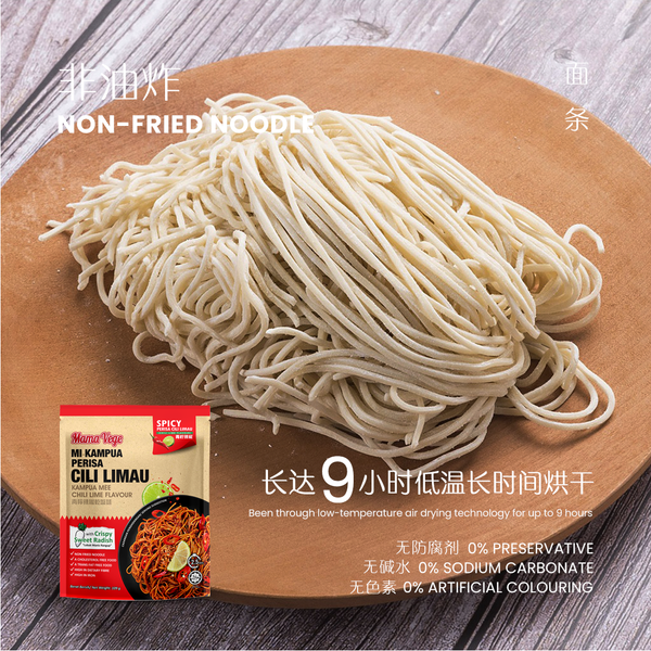 這款砂拉越香辣青檸拌麵是以非油炸麵為主體,是更健康的選擇,每日食用無負擔!再配以清新香辣的醬料及香酥惹味甜菜脯,令人不自覺地一口一口的接着吃!