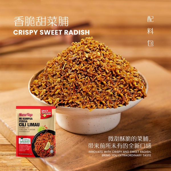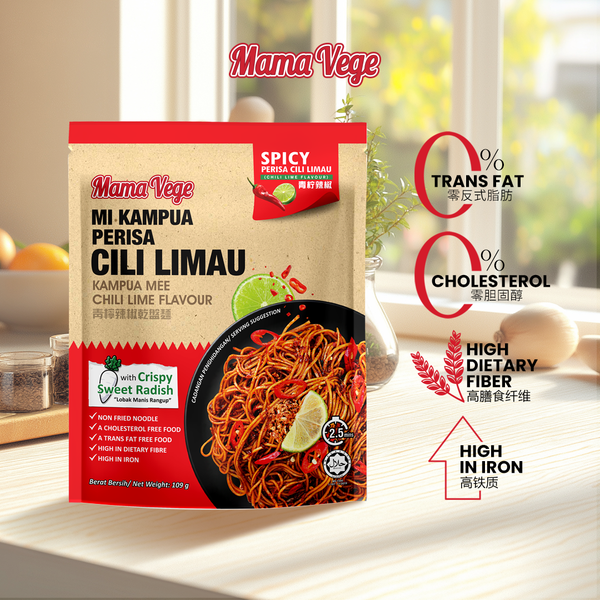 這款砂拉越香辣青檸拌麵是以非油炸麵為主體,是更健康的選擇,每日食用無負擔!再配以清新香辣的醬料及香酥惹味甜菜脯,令人不自覺地一口一口的接着吃!