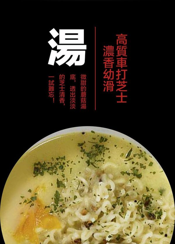 呢個麵使用高品質價格的車打芝士粉,湯頭濃郁,煮麵時已經聞到陣陣芝士蘑菇嘅香味,已經非常吸引,入口感覺就更似濃濃的卡邦尼 carbonara 湯麵!個湯底非常香滑,每條麵都沾上芝士蘑菇湯,食完個麵忍唔住仲飲哂成碗湯呢!