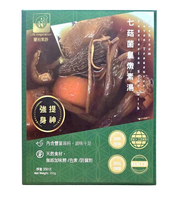 這款七菇菌皇燉素湯是一款集合多種菌菇精華的養生湯品,專為素食者設計。它富含菌菇鮮味與多種氨基酸,具備滋補養生、提升免疫力的功效,燉煮後湯頭濃郁清香,而且無添加味精、色素或防腐劑,是滋補身體的健康選擇。